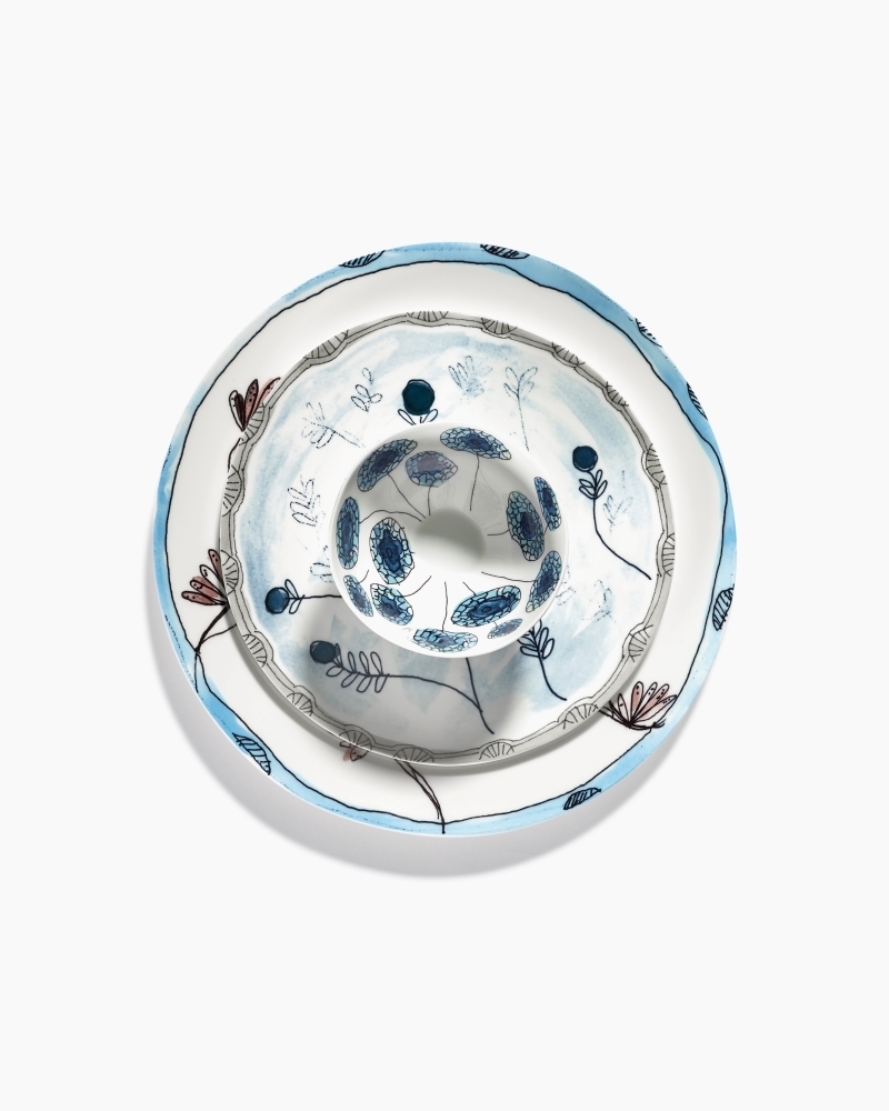 Marni x Serax - I samarbeid med Serax har det italienske motehuset lansert et elegant servise, som hyller det italienske motehusets kunstneriske visjon. Marni sin kreative direktør Francesco Risso har latt seg inspirere av naturen og designet de ulike blomstermotivene. Serviset er utført i tynn benporselen, og motivene blir påført for hånd med dekaler før delene så det blir glasert.